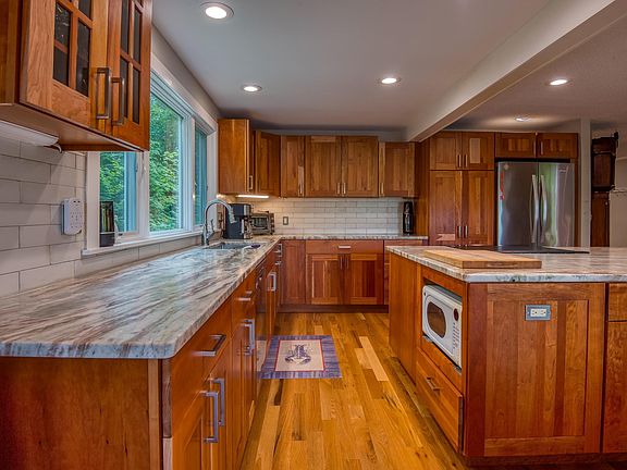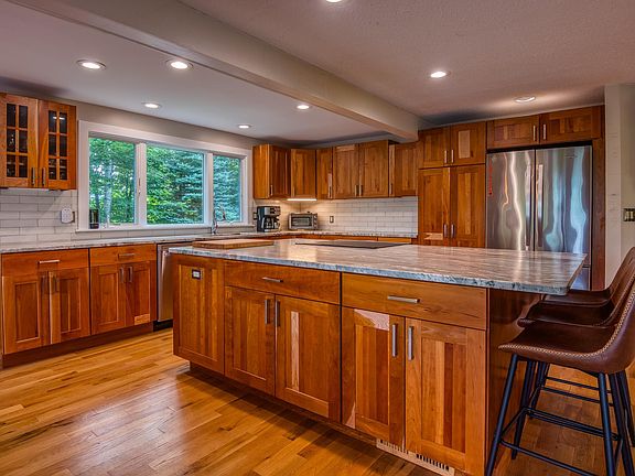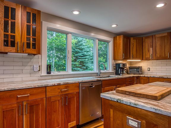- Exterior features: Architecture Style: Contemporary, Cathedral Ceiling(s), Ceiling Fan(s), Detached, Dining Area, Driveway, Fireplaces - 1, Flooring: Softwood, Garage, Gravel, Hearth, Heating system: Baseboard, Heating system: Hot Water, Heating system: Monitor Type, Heating system: Propane, Heating system: Radiant Electric, Heating: Electric, Hilly, In Basement, Indoor Hot Tub, Kitchen Island, Laundry Hook-ups, Lot Features: Hilly, Sloped, Trail/Near Trail, Views, Wooded, Mountain, Near Paths, Near Skiing, Rural, Mountain, Natural Light, Natural Woodwork, Near Paths, Near Skiing, Off Boiler Water Heater, Primary BR w/ BA, Roof Type: Shingle - Architectural, Rural, Skylight(s), Sloped, Soaking Tub, Stove-Gas, Trail/Near Trail, View Type: Mountain(s), Views, Water Heater - Tank, Wood Burning, Wooded