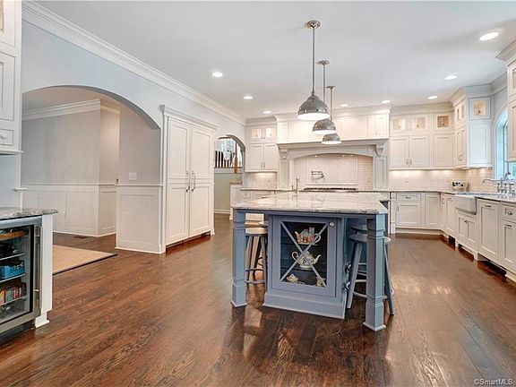 Absolutely Stunning! The custom kitchen welcomes even the most discerning home buyer. Its one of a kind with a huge Granite 5x9 center island with prep sink, built-ins and seating. There is a baking center, 2 dishwashers, 3 ovens, warming drawer, floor to ceiling cabinets, barn sink and separate walk in pantry room. 6 Burner Thermador Gas Range with pot filler, built ins, wine chiller, under cabinet lighting and high end cabinets. No detail was spared. The main level has beautiful crown and trim moldings and hardwood floors throughout with great flow from the large living room, dining room, office, den (or 5th bedroom) The full bath on the main level adds to a versatile floor plan. Just a few steps up from the kitchen is the enormous family room with hardwood floors, vaulted ceilings, built ins, closets and plenty of storage. You can access the bedrooms from the family room or main foyer. Enter the master bedroom through the double glass doors and find tray ceiling, master bath with double sinks, whirlpool tub, water closet and tiled shower with glass enclosure and large walk in closet. The upper level has 3 more bedrooms plus a large hall bath and laundry room. Full unfinished basement with separate access to the 3car garage, Belgian block lined driveway, landscaping, invisible dog fence, new central air handler and unit, oil heat, city water and 5 bdrm septic are some of the many features to be found. Live, work and entertain, it's all here for you. Just 60 Miles from NYC!
