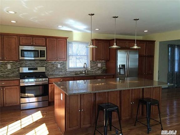 Charming waterfront cape located in desirable Amity Harbor. All new stainless steel appl and granite counter tops with island in eik. Sliders to back yard, new windows, new bath and energy efficient gas heating system. Open floor plan great for entertaining. Walk to beach.