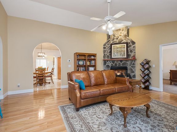 As you approach this beautiful single level house you are welcomed by the cozy covered porch. Enter the front door to find your living room with a stone fireplace and vaulted ceiling. Continue to find your kitchen with updated appliances which opens to your dining area. A multi-use space gives you the flexibility of a home office or additional dining space. A spacious primary suite with a recently remodeled, attached bathroom includes double vanities and a beautifully tiled shower accompanied by a huge walk-in closet. The split floorplan includes three more bedrooms and two full baths to give plenty of space. Off the back of your house, you'll find a large deck with plenty of space to entertain while overlooking your backyard. Head to the basement to find your family room which walks out to a patio. Located in the Riverside section of Lake Monticello gives you access to all the amenities such as the lake, clubhouse, tennis courts, pool, golf and more without the hassle of living inside the gate.