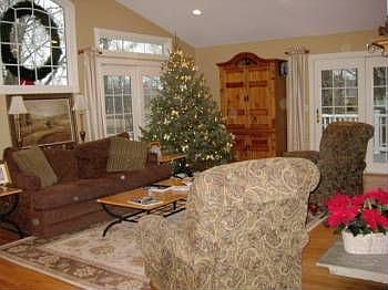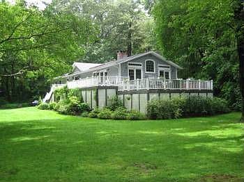 This home has it all! Water views overlooking golf course. Beautifully maint'd, updated kit w/SS & granite, 2 sided fireplce, HW flrs. Master suite, fully fin LL family rm & office. Multi level deck-great space inside & out! Walk or bike to town & beach.