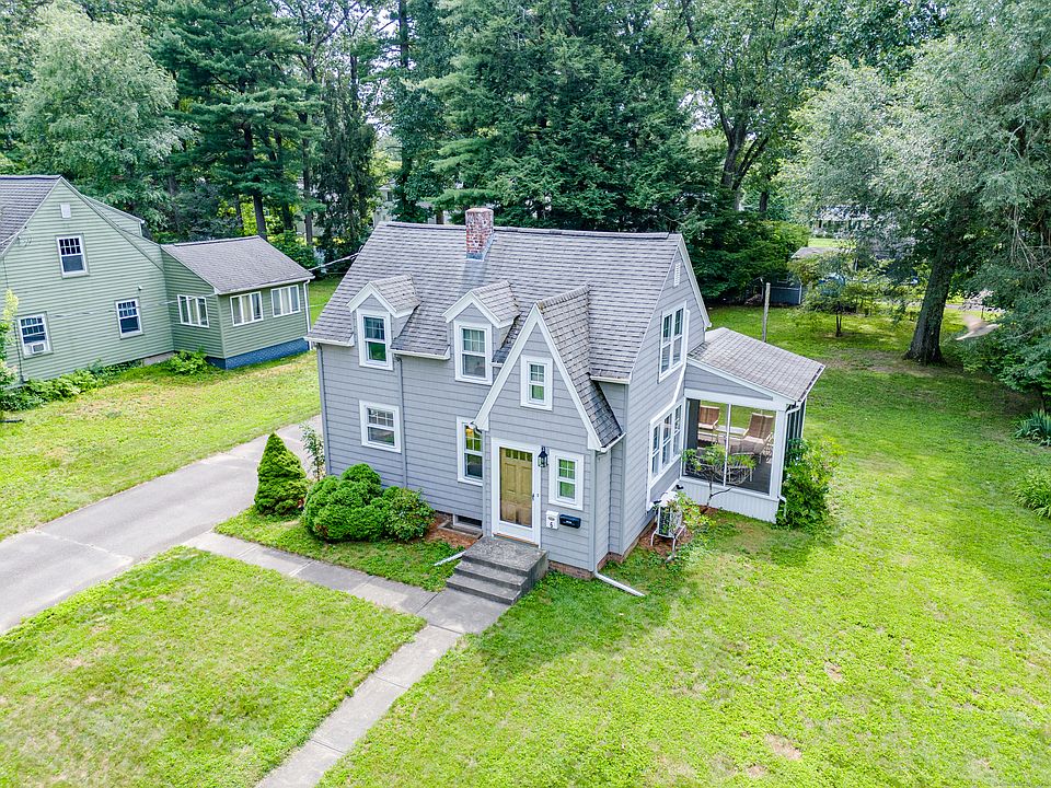 Nestled in a tranquil neighborhood, this charming storybook 2-bedroom colonial/cape style home is ready to enchant you. With a level lot and a detached 2-car garage, this property offers both space and convenience. Inside, you are greeted with windows in excellent condition, installed fall of 2005, letting in just the right amount of natural light...you'll also find a blend of modern comfort and classic charm. Picture-perfect hardwood floors welcome you into the cozy family room and continue upstairs to the inviting bedrooms. The updated kitchen and bathroom boast luxury vinyl plank floors and granite countertops. The kitchen features elegant white shaker cabinets, a stylish tile backsplash highlighted by under-cabinet lighting, and stainless steel appliances-including an induction oven with a stunning hood that vents outside. No need to worry about those scorching summers-mini-splits keep the home refreshingly cool, ensuring you stay comfortable year-round. Plus, with a newer furnace as of 2018 and a hot water system that's only 2 years young, efficiency and peace of mind come standard. Imagine yourself relaxing in the 3 season sunroom, sipping your morning coffee as you admire the storybook charm of this delightful cape.