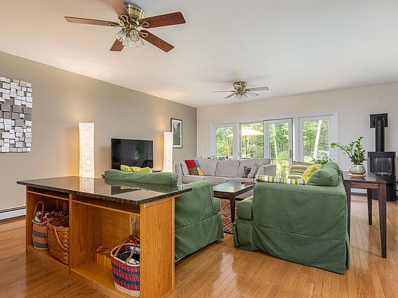 This beautiful home offers one floor living on a gorgeous lot in a quiet and convenient Brunswick neighborhood just minutes to downtown Brunswick. Step into the spacious entryway that leads to the open living, dining and kitchen area with a spectacular view to the private backyard. The kitchen offers abundant storage, granite counters, recent stainless steel appliances and a great peninsula adjacent to the dining area with a propane fireplace. The living room has abundant natural light and opens to the deck and backyard that is a birder's paradise and is adjacent to conservation land and hiking trails. The primary bedroom offers a large walk-in closet and ensuite bath. The second bedroom also has an ensuite bath with an entry for guests as well. The third bedroom is currently used as a home office with built-ins. The lower level offers multiple rooms for additional living, storage and work space, and includes a third bath. This beautifully maintained home has 9 foot ceilings throughout, is well landscaped with an irrigation system, and has an outlet to accommodate a level 2 car charger in the 2 car garage. Come see this move-in ready home.