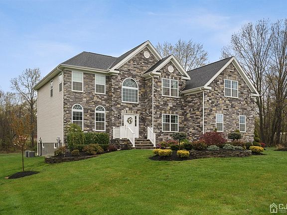 Available for immediate occupancy! Newer, open-concept home built in 2016 ideally situated on a premium cul-de-sac lot in prestigious Hillside Estate prominently nestled upon 1 acre of lush landscape. Great commuting location, only minutes to NYC transportation and major roadways (Parkway, Routes 287, 18, and 9), only 25 minutes to Staten Island, and close to shopping amenities. Elegant two-story entry with hardwood throughout most of first floor. Two-story family room with back staircase and dramatic floor to ceiling stone fireplace open to spacious gourmet kitchen with large island, granite countertops, and SS appliances. Master retreat with sitting area, WIC, soaking tub, fully-tiled dual shower, and dual vanity. Three additional bedrooms in upstairs wing. Lots of closet space and abundance of natural light. Landscape lighting, irrigation system and exterior security cameras. 16x20 Trex deck with lighting and vinyl rails overlooking large, picturesque yard.