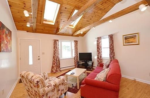 Beautifully maintained 3 bedroom 1 bathroom Ranch in quiet, peaceful neighborhood setting. Nothing to do but move right in! Open floor plan is ideal for entertaining. Recently updated, eat in kitchen offers new maple cabinets,granite counters, stainless steel appliances and access to back deck, great for summer BBQs! Gorgeous, sun filled living room boasts Pergo floors, Cathedral ceilings, exposed wood beams and 2 skylights. Great open space! Master bedroom with hardwood floors and large closet. Beautifully updated bathroom! Large fenced in yard with new cedar stockade fence. Replacement windows with lifetime guarantee installed in 2003. Waterproofed basement features French Drain system with lifetime guarantee. This home is a must see!!