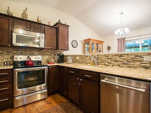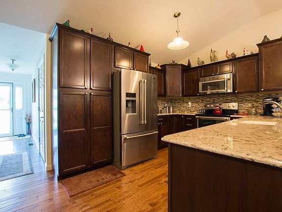 - Kit Dscrp: Flooring - Hardwood, Countertops - Stone/Granite/Solid, Recessed Lighting, Ceiling - Cathedral, Stainless Steel Appliances, Cabinets - Upgraded, Countertops - Upgraded, Open Floor Plan