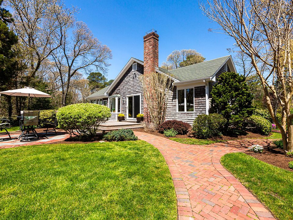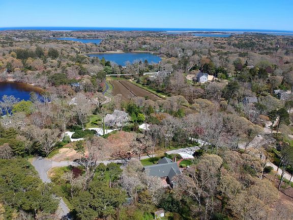 This lovely Orleans home is sequestered in a secluded neighborhood close to Crystal Lake. Set on a corner lot the gorgeous, mature grounds were designed by a landscape architect and present a serene setting with multiple outside spaces to enjoy the horticultural tapestry and extensive hardscape. The home's open floorplan interior is conducive to first floor living and offers a vaulted great room with raised-hearth fireplace, wonderful light and access to the substantial mahogany deck . The kitchen and dining rooms are integrated and joined by a curved granite bar for convivial dinner prepping. Further living space in the adjoining cathedral sunroom allows for large gatherings or a quiet reading nook. There's a first floor office, guest bedroom, full bath and the primary bedroom suite with private bath and walk-in closet. The walkout lower level adds significant living space plus a full bath. Despite the solitude offered by 6 Joy Lane it is a mere stroll to Crystal Lake and a short drive to Orleans Center. Seller is engineering an upgrade to the existing Title V septic system.