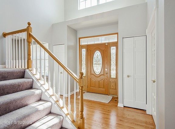 A great find in Willoughby Farms made ready with your buyer in mind! This contemporary beauty is freshly painted, hardwood flooring throughout first level, brand new carpeting on 2nd level and loaded with updates throughout. Featuring 2800 SF of living space: a dramatic two-story great room, updated kitchen with lots of cabinetry, stainless steel appliances, eat-in area and laundry on first level. 3 beds, 2.5 baths, with an over-sized loft that could be converted. An impressive master suite with sitting area, large master bath, double vanities, a soaking tub, separate shower and a spacious his n her WIC. Full finished basement with built in shelving and a 2nd fireplace. A huge brick paver patio that overlooks the pond. It's a great place to raise kids! Conveniently located near expressways restaurants and shopping!