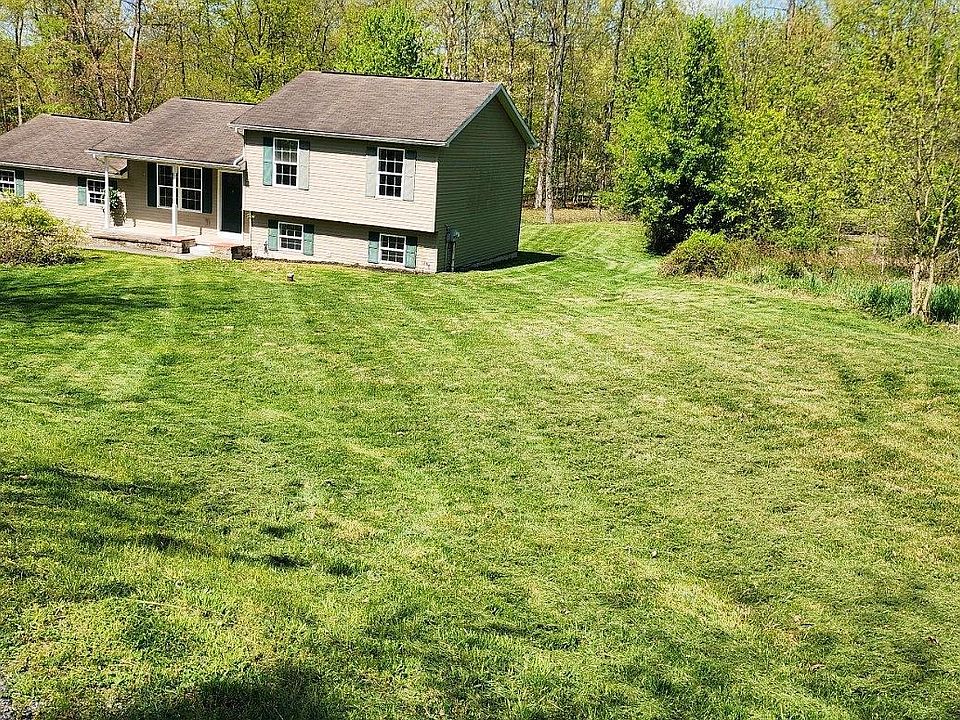 Attractive Split-level on a Spectacular Private 1.59 Acre Partially Wooded Lot! Nice Open Home Plan! First Floor features a Spacious Eat In Kitchen w/ Oak Cabinets, Stainless Steel Double Bowl Sink, Beautiful Tile Backsplash, Electric Oven-Range, Microwave & Dishwasher, Spacious Pantry, Slider to Rear Deck w/Wooded Backdrop and also including a Spacious Open Living Room, Upstairs features a Full Bath w/Newer Vanity & Tub-Shower Unit, 3 Newly Painted Bedrooms with great closet space , Lower Level features a Huge Family Room, Additional Full Bath w/ Shower Stall & Laundry, This home also featured a Spacious Rear Deck and 2 Patios that overlook a Panoramic rear yard! New Paint thru out home, New Heatpump! This Home is Move In Ready, Nice Oversize 2 Car Garage, Plenty of Additional Parking, this Private Lot has a Beautiful Backyard w/Lots of room for Entertaining, Children and Pets! (Surely a One of a Kind Private Peaceful Setting!!)