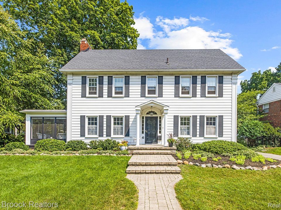 Classic Colonial complete with Authentic Construction/Details and Enhancements true to the Building done in the 1920’s. The symmetry of this Center Entrance Colonial in Historical Pleasant Ridge is accentuated with a Fan Window above and Side Lights Flanking the Main Door. Step inside and the 9 Foot Ceilings offers a Bright-open space with terrific South Facing Views. The Main Hall connects the Front and Back Door while offering access to each of the Main Rooms. The Living Room is anchored by a Pewabic Tile Surround Fireplace flanked by French Doors leading to a Quintessential Screened Porch – perfect for entertaining and relaxation! Note: the Custom, original Stepped Wet Plaster Molding. A Built-in Corner Cabinetry and Crown Molding complete the Formal Dining Room. The Tongue and Groove Knotty Pine Walls and Cabinetry provides nostalgia and warmth to this Kitchen. Powder Room completes the Main Floor Amenities. The Second Floor offers 4 Bedrooms and 1 Full Bathroom, Hall Closets with Built-in Dressers. The 3rd Floor features 2 Bedrooms and 1 Full Bathroom, and Double Fan Shaped windows on each side of this floor. Enjoy Pleasant Ridge Amenities: Community Center with Pool and Fitness Center; Parks with Tennis/Pickleball Courts; Community Garden; and Dog Run.