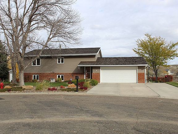 Beautiful, move-in ready split-level 4 bed/2 bath, 2128 sq ft daylight walk-out basement w/an oversized double attached garage located in a secluded cul-de-sac in Georgetown Estates on a 9,925 sq ft lot. Gorgeous badlands and Makoshika Park views with no backyard neighbors! The upper level has a spacious open floor plan with vaulted ceilings; French doors lead to a deck and a large patio overlooking a coulee, perfect for entertaining and watching the plentiful wildlife. The large well-laid out kitchen has abundant cabinetry and an eat-in peninsula. The lower level has a huge walk-out family room with a fireplace + a bonus room that could be used for an office, exercise room, playroom, whatever you would need. The yard is private and beautifully landscaped with underground sprinklers and drip system with mature shade trees and perennials as well as a large shed. The lower level of the yard has a garden spot with fruit trees. This turnkey home has maintenance free steel siding with updated energy efficient windows, new countertops, as well as many other updates! Qualified buyers may call with questions or for a walk through.