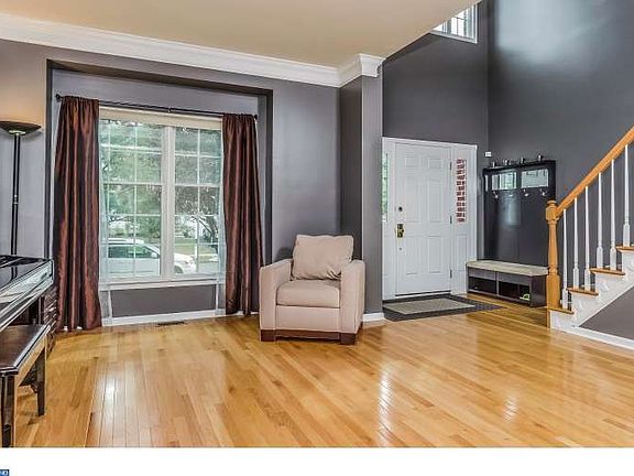 Beautiful 4 bedroom 3.5 bath brick front Mansfield model home in the desirable Estates at Princeton Junction with finished basement. Gleaming hardwood floors on first floor. Bright 2 story foyer opens into living room with crown moldings and dining room with bay window, chair and crown moldings. The welcoming kitchen features granite countertops, kitchen island, tile backsplash, stainless steel refrigerator, pantry, eat in area with skylight and sliding door to backyard. Adjacent is the family room with fireplace. Laundry room, and half bath complete the first floor. Upstairs you'll find a large master bedroom with walk in closet, impressive master bath dual sink vanity, tub, and separate shower. 3 more bedrooms and hall bath with double sinks complete the second floor. Finished basement has plenty of storage, a full bath and versatile rooms. Professionally landscaped. Cul de sac location. Association fee includes pool, tennis, gym and playgrounds. Close to Princeton Junction train station. High ranking West Windsor Plainsboro Schools.