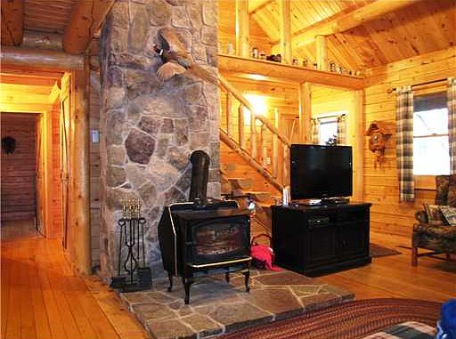 Summer Fun! 3 BR year-round waterfront on Highland Lake. Spectacular custom built Katahdin log home sits on a beautiful 1.29+/- acres. Features granite, stone hearth & woodstove,central A/C, dock etc. Water Ski, Fishing, Pontoon Boat & Swim!