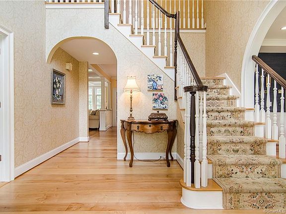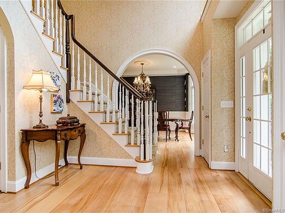 Beautiful Custom Built 5 bedroom Colonial, Move in ready Maple wide plank wood floors through out, coffered ceilings, crown moldings & more. Custom Chefs kitchen at its finest including blue pearl granite, marble back splash, breakfast bar, Bosch dishwasher, double oven, 6 burner Viking gas stove. Propane hooked up to the stove and grill 3 car garage enters into a mudroom and laundry area with wash sink, built ins and custom sink in half bath. Bright sunny 4 season sun-room off the kitchen with cedar ceiling, ceiling fan crown molding and french doors to the deck. Beautiful coffered ceilings and archways in the family room with wood burning fireplace with raised hearth. Formal dining room with tray ceilings wide plank wood floors and big bright windows. Master bedroom with all the trim work detail through out accompanying two walk in closets for him and her, vessel sinks, granite counter, frameless glass custom shower and spa tub to relax in. This lovely home is wired for surround sound and a generator.Gorgeous outside grounds with irrigation system, electric fence, trex deck, and the perfect shed with electricity and garage door for lawn mower etc. Newer furnace and town water/sewer Close distance to down town Simsbury and highway access and BDL just minutes away Endless possibilities in this dream home.