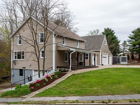 This gorgeous Monson home will take your breath away! So convenient to town for running errands yet in a private setting with plenty of parking for family and guests. You will love the modern amenities including granite/stainless steel kitchen, large granite island, open floor plan and recessed lighting...and then the rustic farmhouse feel and charm with warm wood flooring and custom stair railings made from a black walnut that fell during the historic tornado. The first floor also features a 1/2 bath with laundry and sliders to wrap around deck with covered front porch. The 2nd floor offers 2 bedrooms and full bath, and the master suite will wow you - with walk-in closet and master bath with tiled walk-in shower! Outside is a huge garage just built last year featuring double and single oversized 9 ft doors. There is also walk out storage in the basement with a garage door to access. Don't wait...the first showings will begin at the open house Sunday 5/7/19 at 2pm!