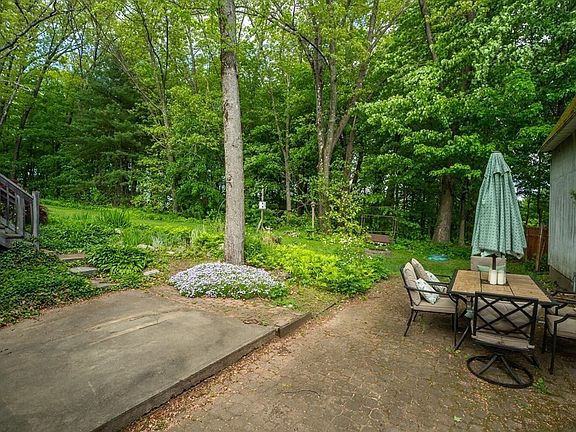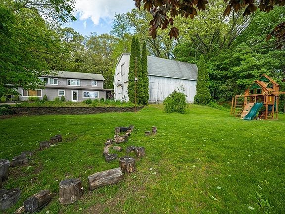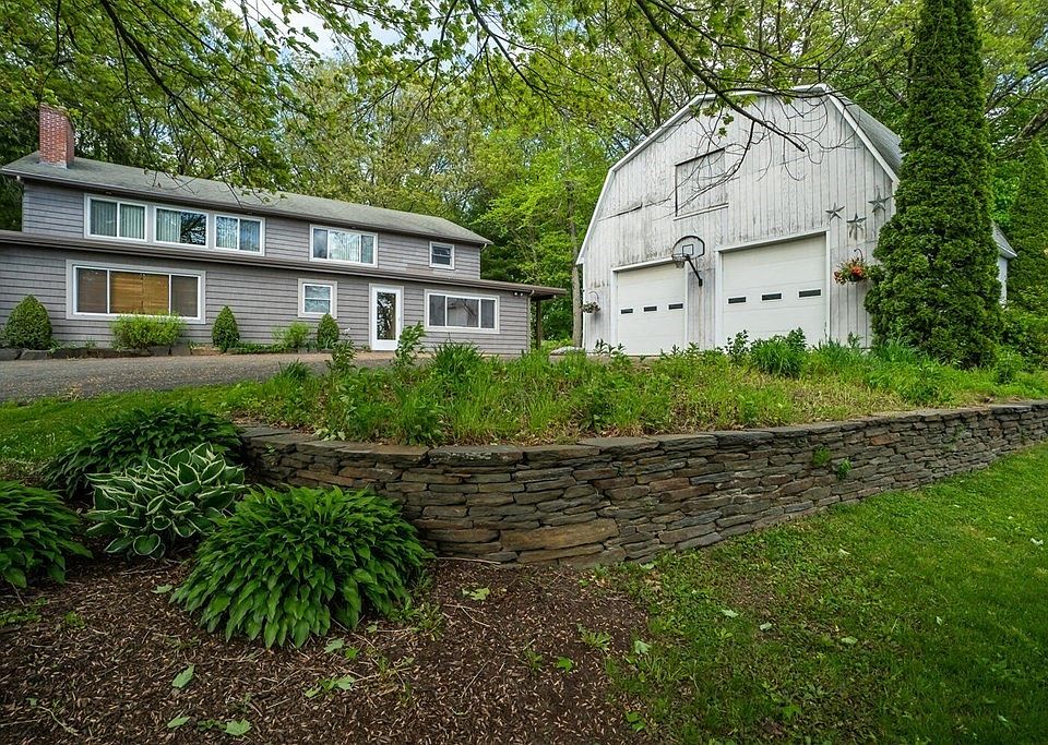 A babbling brook leading to an established koi pond greets you as you approach this unique Hatfield 2 family home! Located just off of Main Street just a short walk from the library & elementary school, you'll be surprised at just how large this home is! The primary unit features a lovely open floor plan with large windows & amazing natural light! The fireplace anchors the living room & provides an amazing focal point w/ a stunning goshen stone hearth. With spacious bedrooms, central AC, 2 full baths & a large family room in the lower level, this floor plan will delight any buyer. A 1 bedroom apartment w/ an established, reliable, month to month tenant completes this floor plan. The GIANT garage measures 33 X 37 with 2 oversized doors, parking for 4 cars and a propane "hot dawg" heater has tons of potential for a workshop or a place for ANY type of hobby. It includes a walk up 2nd floor with 850 sq. feet of unfinished storage space. Stop by the open house on Sunday 5/22 from 1:30-3:00