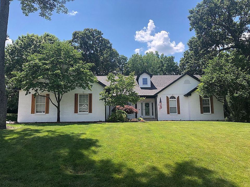 Nestled on 0.83 acres just minutes from St. Charles County, this gorgeous ranch provides the feel of a private retreat w/the convenience of being close to highways! Walking in, you will notice the attention to detail from the stunning, Brazilian cherry hardwoods, Anderson glass doors and crown molding to the soaring cathedral ceilings. The elegant great room is complimented by the eye-catching, floor to ceiling stone fireplace and opens to the beautiful kitchen and breakfast room! Relax in 4 seasons' room off the kitchen w/heating/cooling and beautiful wooded views or enjoy time on the large deck! The luxurious master bedroom is a dream w/access to the deck, vaulted ceilings and a private suite. The formal dining room boasting crown molding and great laundry room complete the main floor. The lower level boasts a half bath, rec room and bedroom w/plenty of room for storage as well! With too many updates and features to list, this home is a must see!