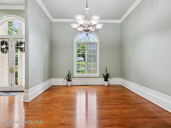 Nestled in the Glenmaura development , this stunning ranch home greets you with a beautifully landscaped front yard that enhances its curb appeal. Offering a little over 5,000 square feet of meticulously designed living space, the home features four spacious bedrooms and four and half tile bathrooms, each thoughtfully appointed. All bedrooms are en-suite. A stately entrance leads into an interior filled with intricate crown molding and rich hardwood flooring. The gourmet kitchen, with its cherry wood cabinetry, flows seamlessly into the expansive living room, where a cozy gas fireplace and built-in bookshelves create a welcoming atmosphere. A dedicated home office provides a quiet workspace with cherry, custom. built-in cabinets. The finished basement includes a family room, stylish bar, perfect for entertaining guests. The luxurious primary bedroom boasts two walk-in closets and an en-suite bath designed for relaxation. The back patio is ideal for hosting and entertaining, while a tranquil pathway leads you down to a Zen-inspired stone patio, where you can unwind to the soothing sounds of a babbling stream. The 3-car garage provides ample space for vehicles and storage. With its exceptional design and tranquil setting, this home is the perfect combination of elegance and comfort.
