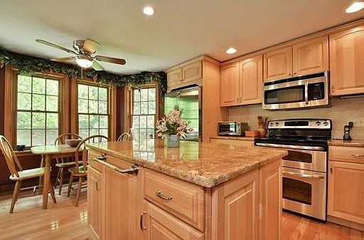 Nestled in this lovely neighborhood sits this gorgeous 3 bed, 2.5 bath Colonial. This home has a recently remodeled kitchen boasting with gorgeous cabinetry; beautiful hardwoods; granite counters; large center island also with granite; and dining nook over looking the impeccably landscaped backyard. The family room is a nice cozy room complete with fireplace. There is a formal living room that opens to the formal dining room all with gleaming hardwoods. The master bedroom comes complete with double closets; sitting area with fireplace and recently remodeled en suite; two other good sized bedrooms all with hardwoods and another full bath. All windows are Pella and are newer; as well as the roof. Central air for those a bit too warm days ahead, and for those lovely afternoons and evenings now, the back deck overlooking the private backyard is perfect! This home has it all, a wonderfully vibrant neighborhood and your private oasis in the backyard!