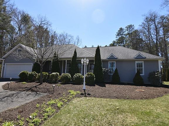 One level living at it's best in fantastic Southampton location, in desirable neighborhood close to everything. Quality built and meticulously maintained, this ranch offers a large living room with cathedral ceiling and corner gas fireplace open to large dining area with island and eat-in kitchen with sliders to private backyard. Three generous bedrooms including master bedroom with master bathroom. Mudroom off of garage and first floor laundry.Need more space? Basement is partially finished and there is the potential to finish a bonus room above garage. Two car garage, economical gas heat and mini splits for cooling and supplemental heat, and sprinkler system. Backyard has storage shed, paver patio, fire pit and basketball court.