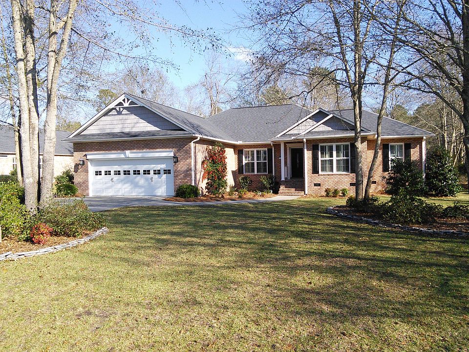 Architectural designed, single family, brick home in gated lake community. Hardwood flooring, granite countertops, crown molding, tray ceilings, plantation shutters & stainless appliances. Two car & golf cart garage & walk up attic. Pickleball, tennis, kayaking, & community center. Second golf course opening this fall. Golf initiation fee paid by owners.