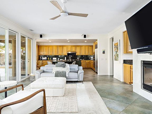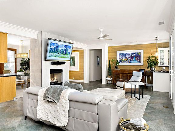 Welcome to 6 Lake Mendocino, a luxurious residence nestled within Mission Shores, a gated community in the heart of Rancho Mirage. This stunning home boasts 4 ensuite bedrooms, 4.5 bathrooms, wood wall accents throughout the spacious living area, freshly painted interior, and an open floor plan featuring an oversized kitchen complete with a large island, perfect for entertaining and culinary enthusiasts. A double-sided stone fireplace adds a touch of elegance, seamlessly connecting the dining room and great room. Indulge in the lovely primary bedroom with a fabulous ensuite bathroom that features dual custom closets, sinks, and water closets, ensuring your utmost comfort and convenience. There are 3 guest bedrooms, all with ensuite bathrooms. Other upgrades include custom lighting, a full house water softener system, alkaline water drinking system, wood wall accents in the primary suite, built-in ice maker, and a home security system. The professionally landscaped backyard has 8 palm trees, plenty of outdoor lighting and is a haven for outdoor entertaining boasting fabulous mountain views. Enjoy a covered patio, pebble tech pool and spa and BBQ island complete with a built-in beverage refrigerator. This home also includes a two-car attached garage with storage space.