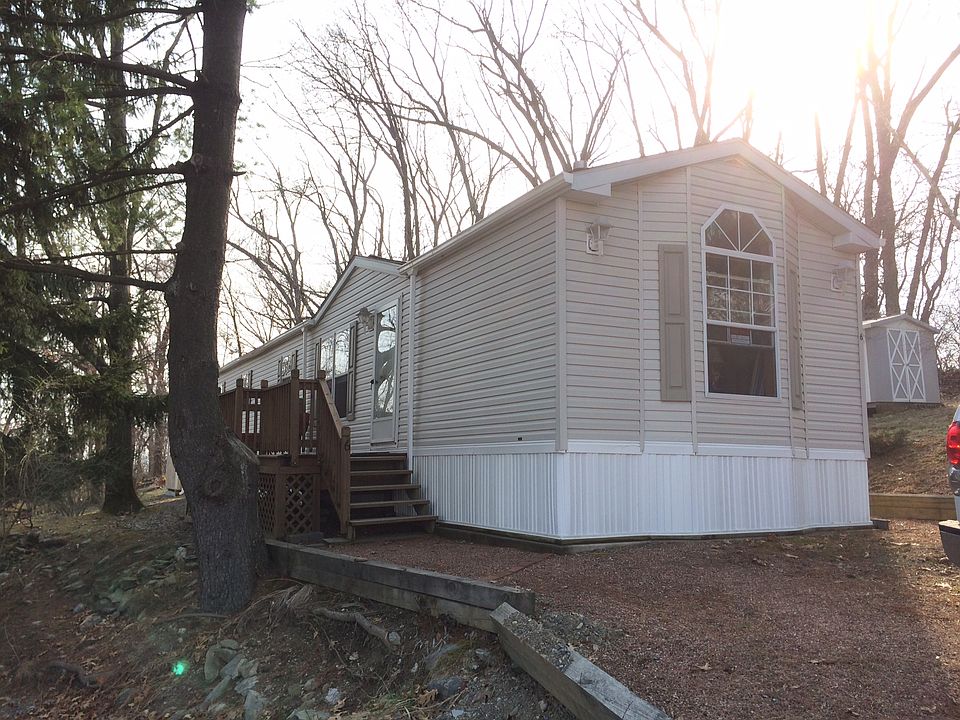 This well maintained 14x70 2br/1 bath is set on a beautiful hill top lot surrounded by quiet woods and wildlife. Located in the Lakeview Terrace 45+ community, you will find a welcoming friendly atmosphere with great people and views of the Sylvan Lake valley. The home has two pressure treated decks, mature landscape, and a very nice storage shed (complete with lawn care/gardening supplies!) Inside there is a front bedroom with a nice large window providing plenty of light, living room with windows on both sides, eat in kitchen, laundry area adjacent to the bathroom which includes a modern washer and dryer, and the second bedroom in the back which is currently the "master" bedroom. All of the furniture and decorations pictured can be included in the asking price, or removed at buyers request. Central AC/Propane heat. Move in ready, no maintenance or repairs required. Please feel free to call with any questions or to schedule an appointment to come take a look!