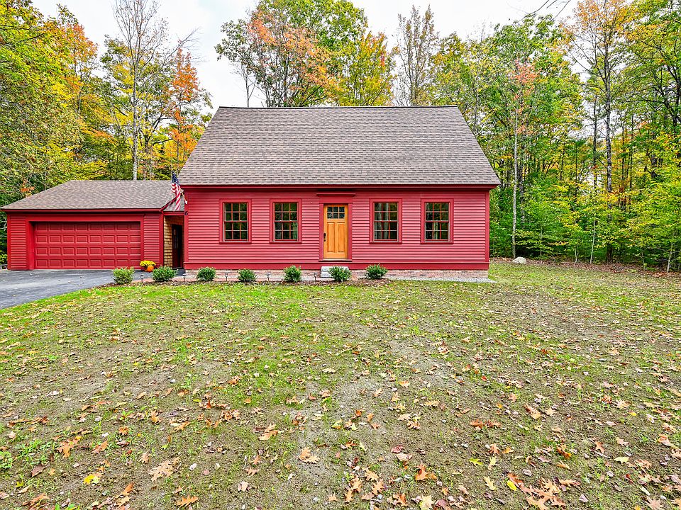 This newly constructed, custom-built Cape-style home is nestled on over 1 wooded acre in the quiet town of Rome, located in the heart of the Belgrade Lakes region. Drawing inspiration from classic New England architecture, this 3+bedroom, 2.5-bathroom home seamlessly blends historical design elements with modern comfort.