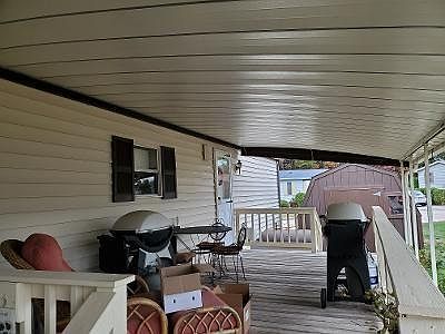 METICULOUS 2 BEDROOM, 1 BATH MOBILE HOME WITH ALL THE BELLS AND WHISTLES. MAIN BEDROOM HAS 2 CLOSETS AND AN ADDITIONAL WALK-IN-CLOSET THAT COULD BE AN OFFICE OR CRAFT ROOM. TOTALLY RENOVATED BATHROOM DOWN TO THE STUDS WITH WALK-IN SHOWER, 2 SINKS, SKYLIGHT AND LIGHTING FIXTURES. KITCHEN/DINING HAS OPENING INTO LIVING ROOM WITH COUNTER SEATING. LIVING ROOM OPENS TO A DEN. FRONT PORCH OPENS INTO THE DEN. LARGE REAR DECK WITH CARPOIRT AND ROOFING OVER DECKING. 3 CAR SPACE IN DRIVEWAY. HUGE SHED. LARGE CORNER LOT.