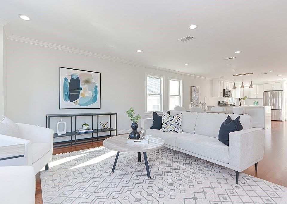 This stunning, like-new, approx 2000 square foot condo has not one...but TWO Master Suites! The property features 3 gorgeous bedrooms and 3 full bathrooms with high end finishes. The bright open kitchen is a dream with under counter lighting, glacier white quartz counters & backsplash and stainless steel appliances.The huge open concept dining/living room boasts tons of natural light and features both front and back decks (composite back deck just replaced!) The main floor is rounded out by a bedroom (or office) and full bathroom. Upstairs are the two master suites and convenient laundry. Gleaming hardwood flooring throughout. Just minutes to Roslindale Square and JP Centre and all that they have to offer.