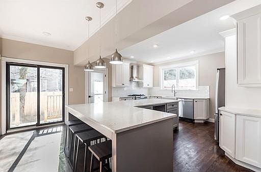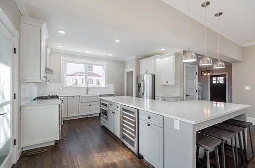 - Kit Dscrp: Flooring - Hardwood, Cabinets - Upgraded, Kitchen Island, Stainless Steel Appliances, Open Floor Plan, Recessed Lighting, Remodeled, Wine Chiller