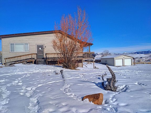 Lovely home in Barger with a landscaped yard and mature trees. Take in the beautiful views of the Wind River mountains with the wrap around balcony. This property features a 2 car attached garage and an additional detached heated shop/garage.