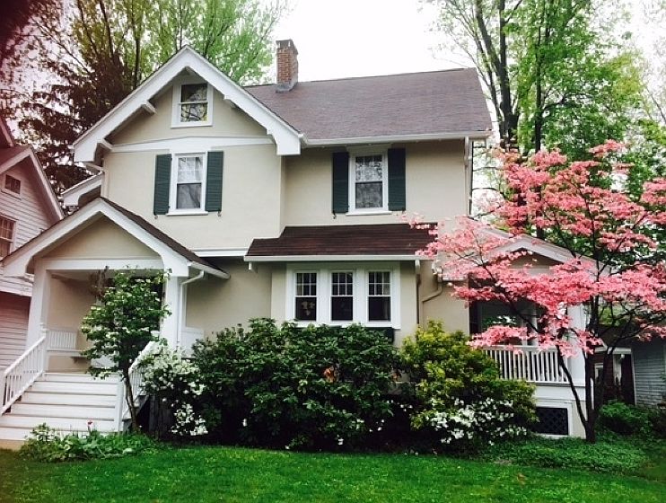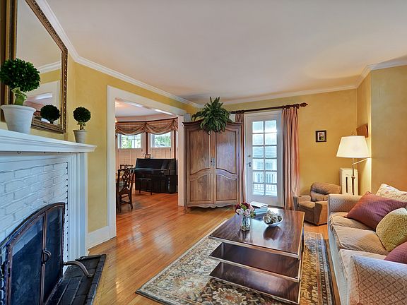 Charming home with lovely architectural details...deep moldings,French doors,side porch and porch off master bedroom. Extra large updated kitchen.Inviting backyard w/many plantings.Close to NYC trans.