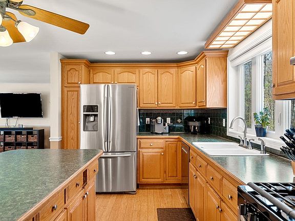 Welcome to this fantastic home situated on a private 2-acre lot in one of Hooksett’s most sought after neighborhoods. As you enter this light-filled home you will love the hardwood floors throughout the entire first floor, including Bamboo in the kitchen and foyer. Versatile floor plan with living room, dining room, open kitchen with stainless steel appliances & first-floor laundry. Exit the kitchen through the french doors which leads you to an oversized deck. The upstairs has 3 bedrooms, a huge primary suite with a walk-in closet, and 2 other very large bedrooms. The finished basement has office space, an additional living room, a workout room, and ½ bath. The walk-out leads you to the spacious backyard and hot-tub. Great space for all your family entertaining! 2-car garage, multi-zone central AC, brand-new roof, security system, state-of-the-art Viessmann gas furnace and generator ready. This home is close to the highway, restaurants, and retail.