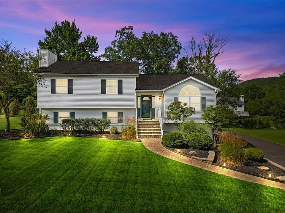 Discover the epitome of pride of ownership in this 4 bedroom, 2.5 bath split-level home, nestled on .34 acres in the picturesque subdivision of Valley Forge in Highland Mills. Located in the Cornwall School District, this property is sure to impress. As you arrive, you'll be welcomed by a new driveway, manicured landscaping, elegant hardscaping, subtle uplighting, and a charming paver walkway/entry. Upon entering, you'll be greeted by a flawlessly updated home featuring hardwood floors in the entryway, dining room and kitchen. Vaulted ceilings and a palladiun window are stunning in the formal living room, and bright French doors lead you to the beautiful dining room. The brand-new kitchen (2022) is a delight, boasting stainless steel appliances, a sleek glass backsplash, crisp white shaker cabinetry, a fabulous large sink, and an upscale faucet. Ascend to the upper level to find 3 bedrooms with plush new carpeting. The guest bath (new in 2012) is immaculate and looks brand new, while the master suite offers dual closets and a new (2020) full bath with a breathtaking custom shower showcasing designer tile and fixtures. The lower level presents a spacious family room with a cozy wood-burning fireplace, a 4th bedroom, an updated half bath (2019), and a 2-car garage with a durable epoxy floor. Solar panels make your electric bill so low. Outside, relax in the expansive heated above-ground pool with deck and there is an additional deck off the house for BBQs. Further features include a 50-year architectural roof, water softener, town water and sewer. Revel in Cornwall Schools and Woodbury Recreation (offers Town Lake & Pool). Additional Information: HeatingFuel:Oil Above Ground,ParkingFeatures:2 Car Attached,