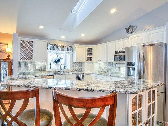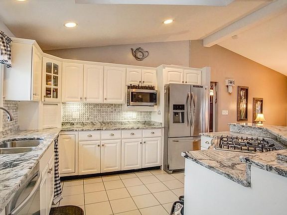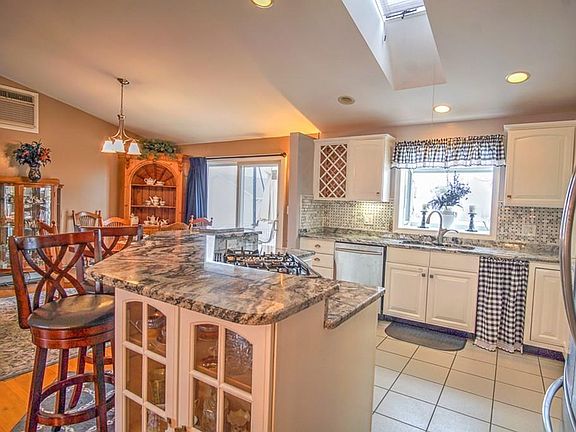 - Kit Dscrp: Countertops - Stone/Granite/Solid, Skylight, Ceiling - Cathedral, Flooring - Stone/Ceramic Tile, Kitchen Island, Open Floor Plan, Recessed Lighting, Countertops - Upgraded, Window(s) - Bay/Bow/Box