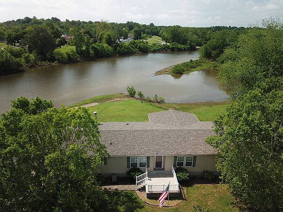 Located just outside of Golconda, Pope County, Illinois is where you will find this beautiful well-kept home with lovely water views. Lusk Creek is located right in your backyard. There is an abundance of birds and wildlife that frequent your viewing area. This home is a 3-bedroom, 2 bath upgraded manufactured home offering 2280 square feet. Located off the back of the home, is a private screened 12 x 24 porch where you can relax and enjoy the water views. Inside the home, you will see the quality immediately. The ceilings and walls are drywall with crown molding. The kitchen solid surface countertops, cabinets and vanities are all upgraded high quality. The kitchen, 14 x 17, is spacious with plenty of counter space including a large island and walk in pantry. In the kitchen the gas range, refrigerator, above the range microwave and garbage disposal all make using this space a pleasure. There is a family room, 18 x 16, with a gas fireplace and large windows with private water views. At the same end of the home there are two bedrooms, each 14 x 11, along with the laundry room with easy access to the outside. The home also features an open concept living room and dining room, 15 x 29. The main bedroom,14 x 16, is private from the other bedrooms. The ensuite bathroom has a soaking tub, shower and large walk-in closet. Also located on the property is the 2-car detached 24 x 30 garage with a concrete drive that will accommodate parking for two other cars and 10 x 16 storage shed. Recent updates to the home include a new concrete front porch in 2020, new furnace in 2021, new roofs on the home and garage in 2023, and septic aerator update in 2024. You can walk to Golconda from this home and enjoy the festivals and activities that Golconda has to offer throughout the year. The tractor show, quilters luncheon, shrimp festival and deer festival are just a few of the events hosted by this quaint river town. The Golconda Marina is 1/2 mile away. You could install float docks along Lusk Creek and have access to the beautiful Ohio River directly from this property. This is a one-of-a-kind location. Take advantage of the opportunity to buy a well maintained, move- in ready home.