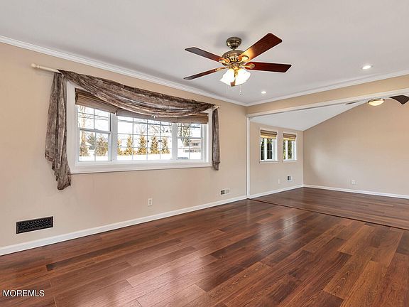 Welcome Home to one of Hazlet's best neighborhoods. Upon entering this desirable ranch you will find open concept living room, dining room and kitchen with lots of cabinet space, granite countertops and SS appliances. This home was 3 bedrooms but owner converted it to 2 bedrooms with an open area leading to a slider door onto the large composite decking perfect for entertaining. There is a power awing over part of the deck and it leads you right into a solar heated above ground pool. The yard is fully fenced in with a shed for additional storage. Full finished basement with 1/2 bathroom, office area and recreation area. Double wide driveway was recently resealed and front porch and walkway were replaced approximately 5 years ago. There is nothing to do but unpack and enjoy!