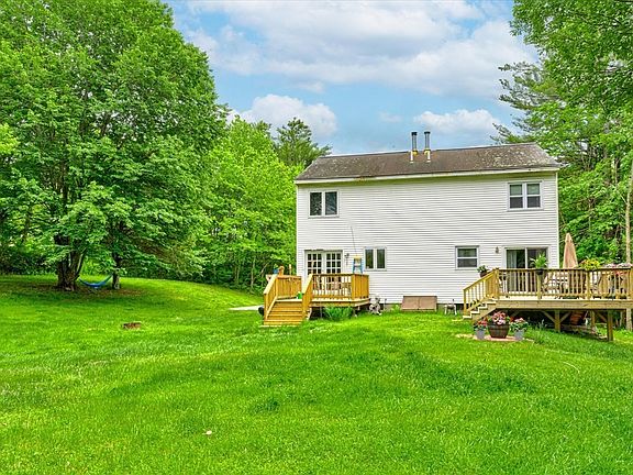 Comfortable, welcoming duplex condo in North Londonderry. Enter from porch to a freshly painted and inviting living room with laminate flooring and large window. Classic oak kitchen and dining combo overlooks large yard. Half bath on first floor and full bath with new flooring upstairs. Generously sized bedrooms with natural light. Closets are well located for organization. Enjoy the outdoors on the rear wood deck and level lot with natural buffer for added privacy. Unfinished basement with storage space, utilities and laundry hookups. Parking spaces for owners and guests. With a condex, you own and maintain an individual unit on a residential lot while sharing responsibility for common elements incl. roof, well, septic, and master insurance policy. It's pet friendly, too! Set back from the road, minutes away from routes 3 and 93, near schools, the airport, Boston Express bus, shopping, and restaurants. Affordability does exist!