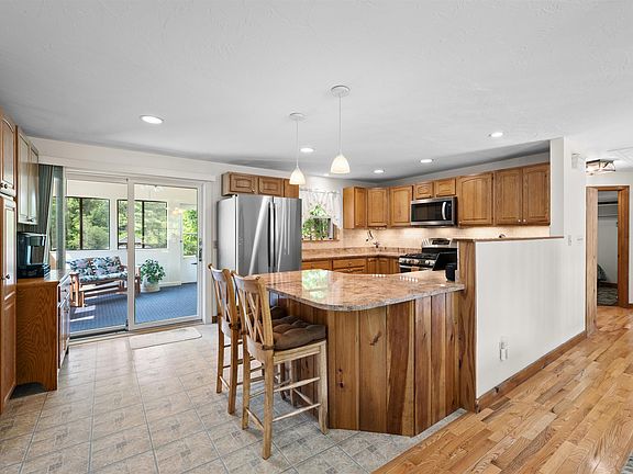 Set on 2.15± acres in a peaceful neighborhood, this expanded split-entry raised ranch offers thoughtful updates, versatile living space, and a sunny yard perfect for outdoor living. The oversized kitchen features granite counters, a breakfast bar, gas stove, coffee station, and pantry cabinet is open to the dining area with hardwood floors and a cozy pellet stove. Enjoy easy access to the 3-season sunroom and both upper and lower decks ideal for entertaining or relaxing in the breeze. The living room boasts a cathedral ceiling and French doors leading to the upper deck overlooking the yard. The primary bedroom offers soaring ceilings, great light, and a cedar walk-in closet. 2 additional bedrooms and a full bath are tucked away on the other side of the home. Downstairs, you’ll find a finished bonus room with laundry and half bath, plus a spacious rec room with walkout access. 2-car garage plus 2 sheds, mature landscaping with perennial gardens. Metal roof, newer double pane windows, and a portable generator hook up. Shopping, restaurants and local amenities in nearby Epping & Lee. Nottingham is home to Pawtuckaway Lake and State Park, offering swimming, boating, fishing, and kayaking on one of the region’s most popular lakes. Residents enjoy a private town beach, public boat launch, and miles of scenic hiking trails. Great commuter location with easy access to Rt. 125 and just 30 min to Manchester, Portsmouth. Open House this Wed 6/18 from 5–7pm & Sat 6/21 from 10–11:30!