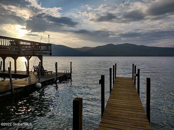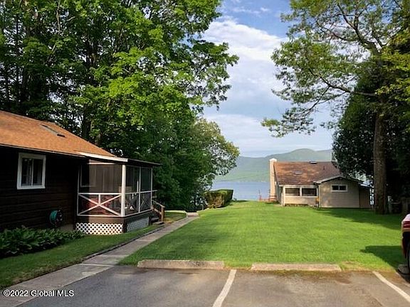 Spend your summers on Lake George with lake and mountain views. The cabin comes with a dock slip that fits up to a 29 foot boat max 8.5ft beam and 5000lbs. Prime location between Diamond Point and the village of Bolton with shopping and restaurants. Enjoy sunrises over the lake from your screened in porch. Shared lake front with sandy bottom, newer docks and common area shared with just 5 other families. Knotty Pine throughout. Seller will consider holding a mortgage with a substantial down payment. Taxes less than $2300 per year. $155 per month HOA fee. No dogs allowed and no renting. .62 acre lot size is for the total property shared by all members.