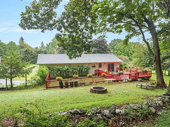 Over-sized, Spacious, 3 bedroom plus office, 2.5 bath 2 car garage. Everything on your wish list. Bi-level sitting pretty on 3/4 of an acre on a dead end cul-de-sac with privacy behind. Edgehill Manor subdivision with municipal water. Living room with wood-burning fireplace, lite & brite with bay window, extra lg formal dining room, eat-in kitchen, master bedroom with walk-in closet and full bath, 2 additional bedrooms all with gleaming hardwood floors. Main bath with jacuzzi tub. Lower level family room with second wood-burning fireplace, Office, 1/2 bath and laundry area. Home updated throughout the years. Well maintained with central air conditioning, 2 tier decking, fenced area for dog or small children, garden area, fire pit, & shed. A must see, new to the market. Walk to town park, sand volleyball, tennis courts, basketball, summer camp & creek. Great commuter location, Less than 15 minutes to Metro North, Rte 9, Taconic. Close to all schools shopping hospitals...