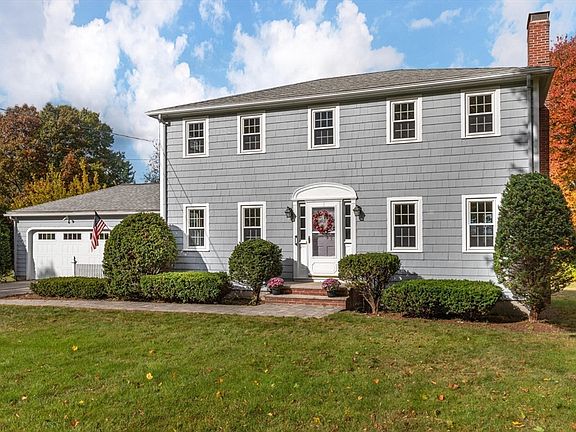 This lovely home sits perfectly on open, picturesque lot on very COVETED street! Front porch welcomes into bright sunroom / breezeway with cathedral ceilings and skylights, leading out to new upper deck overlooking scenic backyard with "Longviews". Follow to kitchen with custom cabinetry, featuring built in hutch and granite counters and access to gracious dining room. Room for all to gather in large front to back living room centered on brick fireplace. Upstairs are four spacious bedrooms and walk up attic. Recently refinished basement, with daylight windows, builtins and fireplace, offers additional recreational and entertaining space. Hardwood floors mostly throughout, newer replacement windows and roof, new boiler. Rarely available OPPORTUNITY in this desired neighborhood, minutes from schools, highways, athletic fields, UMASS and downtown Lowell. Loved by one family for almost 60 years, this WARM and INVITING home is ready to WELCOME you and yours!