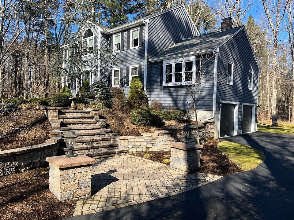 SPECTACULAR 3250 sq ft Colonial located in HALLETT II CROSSING. This home is set back on a PRIVATE 1.2 acre lot, located on the cul-de-sac with public water & sewer. GOURMET kitchen (2019) with quartz countertops, SS appliances & tiled floor opens into 16 x 26 attached family room with vaulted ceilings & fireplace, DR, first floor office, laundry room and 1/2 bath complete the FIRST floor. SECOND floor has 2 full updated (2019) bathrooms and 4 spacious bedrooms with NEW carpet (2021) PRIMARY bathroom has subway tiled shower stall & double vanity, LOWER level has mudroom and knotty pine game room. ROOF (2008) Windows (2007) Furnace (2011) Oil tank (2017) 14 x 18 trek deck with 2 staircases leads to beautiful landscaped grounds with STONE WALLS & FIRE PIT. Two story 12 x 18 shed for garden tools. This neighborhood of 23 homes is located within 3-4 miles of the SCHOOL complex, downtown Mansfield & T station & access to major routes. PRIDE & CARE of this home is THROUGHOUT !!