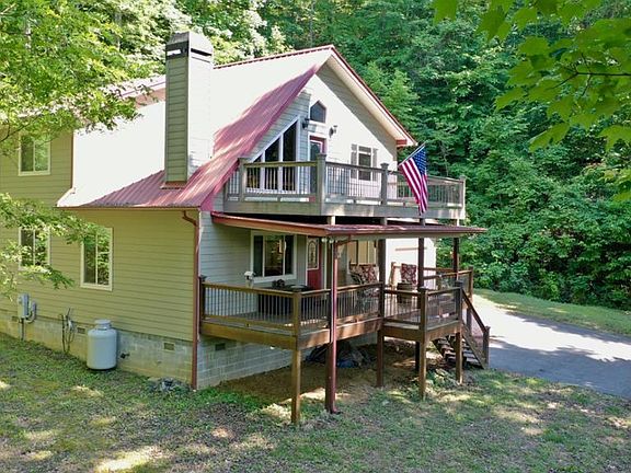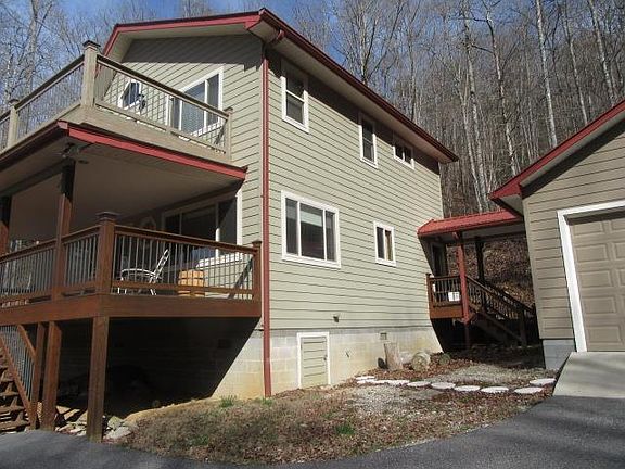This well maintained home has been lightly used and comes COMPLETY FURNISHED! Original Owners have just used as a second home. This 3 Bedroom 2 1/2 bath with 2 car Garage features a stone fireplace that is currently gas but hooked up to a chimney so could be converted to wood burning if preferred. Vaulted ceiling to second floor looks down over living room. Beautiful front deck to enjoy the fantastic view. Guest bedroom on main (could be master, has private bath). Large Master bedroom and bath on 2nd floor with second deck to take in the morning air and view. 2nd guest bedroom on 2nd floor. The approach is an easy paved road (not steep) about 6 minutes from town and local amenities. Drive is a half circle with separate in and out. Home is wired for a generator. Washer and Dryer are currently on 2nd floor but could be moved to kitchen (plumbed). Additional attic storage space in house and garage. ROOF IS METAL AND SIDING IS HARDI PLANK (COMPRESSED CONCRETE) SO RESISTENT TO FIRE, PESTS, AND WEATHER ELEMENTS.