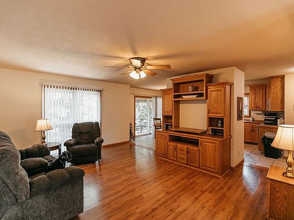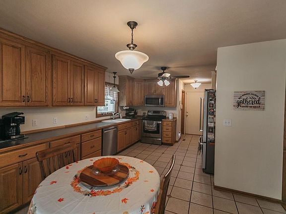 Sitting up high, this home has an upper level covered deck and lower level patio with plenty of space to entertain as well as a lower level in the yard that is very private. Green space abounds! This home sits on a double lot totally fenced. It is low maintenance with vinyl siding and a newer roof, AC and furnace. Enjoy the spacious downstairs with new flooring, full bath and bed for guests, family or college students. There are 2 laundry rooms both up and down! The office has a custom oak desk and book shelves waiting for you to fill. It also has a full closet, so convert it into a bedroom if you want! All rooms have beautiful natural light. Floors in the living area are plank wood pergo or tile making cleanup easy. Extra storage rooms plus storm shelter room! The kitchen has so many cabinets and a double pantry a person would be challenged to fill them all. The home is also wheelchair accessible through the garage. This home has everything! So many features to list, but the owner's favorite thing is the neighborhood. Nice! Quiet! Cul-de-sac living at its very best. Schedule your tour. This one won't last!