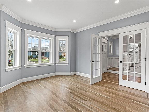 Must see this gorgeous 4 bedroom home w/ thoughtful design & high end finishes! This home is spacious & inviting, offering a grand open flr plan ideal for entertaining & modern day family living. The kitchen features an oversized island w/ seating/ quartz countertops, high-end appliances and walk in pantry. Off the kitchen is a spacious family room w/gas fireplace & direct exterior access w/ sliders leading to large deck & nice rear yard. The first floor also offers a formal dining room w/ wainscoting and tray ceiling, a full mudroom w/ closet & bench seat plus a stylish 1/2 bath. The second level primary suite is oversized and very luxurious, offering 2 spacious walk-in closets, a lavish bath w/double vanities, large shower & soaking tub! Three additional beds, full hall bath & laundry room finish this level. Finished lower level media/ rec room w/ full bath & plenty of storage. 2 car garage, direct entry to mudroom! Quick & easy access only 7 miles to Boston!