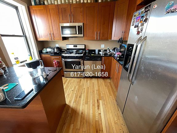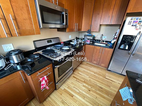 Half fee! Sunny SEPT 5b2b around Boston College. Students OK! LAUNDRY IN UNIT! Amazing Chestnut Hill Reservoir / Cleveland Circle location right on of Comm Ave. Very easy access to B/C/D line. #86 and BC SHUTTLE BUS stops are very close by! Some restaurants and CVS are around the area. This third floor (top floor) 5bed was newly renovated in 2017 with all hardwood floors, recessed lighting, stainless steel appliances including DISHWASHER and microwave, granite counters. Laundry in unit! Central heat and A/C, rear big porch/deck. Street parkings available. Pets negotiable! No utilities included. Contact Yanjun (Lea) for more info~~ There is a 4bed at the same building for different price. 12 months