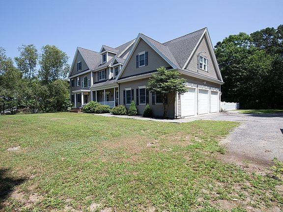 Spacious 5-bedroom stately home in Sagamore checks all the boxes FOR EVERYBODY. First floor layout includes Dining Room, Living Room, Family Room, guest bath and Stylish kitchen. Coffered ceilings abound, Kitchen has granite and high end appliances, Living room with fireplace, and a cozy sunken family room. Upstairs from the grand foyer (one of 2 stairways) are 5 bedrooms, laundry, large closets, high ceilings, fans, and a recently renovated primary suite with 4 piece en suite bath, fireplace and a glorious walk in closet. Ascend another stair to the great room with space for your hobbies and more. The three-car garage. Yard (partially fenced) and drive are very private, house has central air and 2 pellet stoves, transfer switch for generator, and more. This property is not in the construction area of the proposed Sagamore Bridge replacement. See MassDOT (Department of Transportation) and it is not in a Flood Zone.