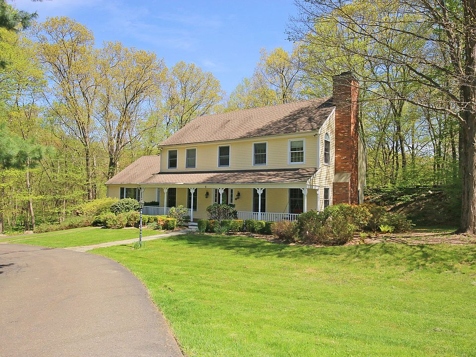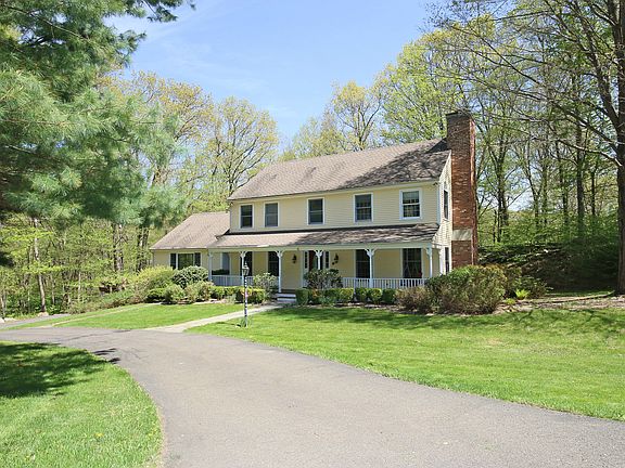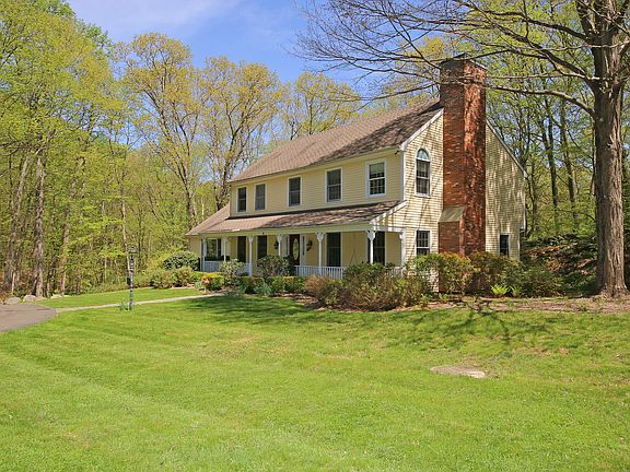 Immaculate Sturges built center hall colonial on 2.36 picturesque acres on quiet cul de sac just minutes to town. Exceptional curb appeal with circular drive, front porch, and professional landscaping. Light, bright, and open floor plan featuring 4,254 sf, 4 bedrooms and 2/1 baths on three finished levels with hardwood floors, crown moldings, French doors, two fireplaces, and expansive rear deck for outdoor enjoyment. The main level offers the large formal living room with marble fireplace featuring custom built wood surround plus French doors to the adjoining private office/library; elegant formal dining room; and most inviting, over-sized kitchen offering center island with bar seating and glass windowed breakfast room with wood burning stove, open to the dramatic beamed and vaulted family room with floor to ceiling brick fireplace, ceiling fan, and French doors to the deck and backyard. The second level features the luxurious master bedroom suite with private bath and spacious walk in closet; convenient laundry; and three additional bedrooms with shared hall bath. This generous home also includes a finished lower level game/rec room (672 square feet) with built-in shelves and cabinetry. Wonderful cul de sac setting with tranquil privacy and babbling brook completes this picture perfect home. Ideal southern Ridgefield location just minutes to downtown or easy access to Route 7 for points north or south. Don't miss the link to the virtual tour and floor plans!